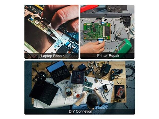 Kabel jest dostarczany w opakowaniu zawierającym 10 sztuk, co jest wygodne dla użytkowników, którzy potrzebują wielu połączeń do swoich projektów lub napraw. Jest kompatybilny z szerokim zakresem urządzeń, w tym telewizorami LCD, odtwarzaczami DVD, laptopami i innymi modułami elektronicznymi. Ultraelastyczna konstrukcja i cienki profil sprawiają, że jest odpowiedni do zastosowań elektronicznych o wysokiej gęstości, gdzie przestrzeń jest ograniczona.