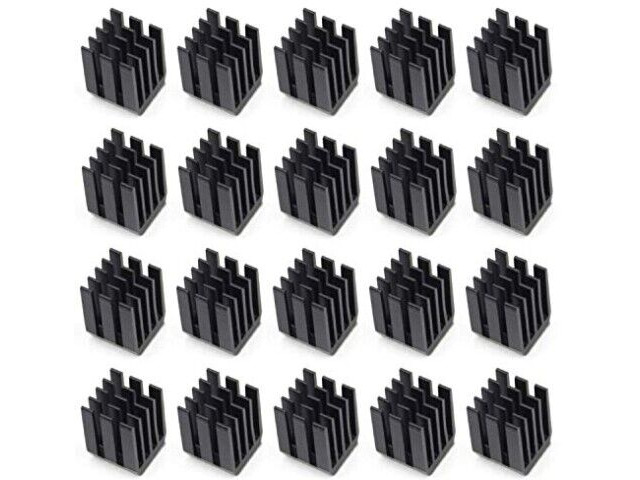 Detta produkt är ett heatsink kit utformat för 3D-skrivare stegmotor drivrutiner. Det inkluderar 30 enskilda svarta aluminium heatsinks, var och en med ett förinstallerat 3M 8810 termiskt ledande klisterband. Dessa heatsinks är avsedda för passiv kylning av specifika drivrutinenheter som TMC2130, TMC2100, A4988, DRV8825 och TMC2208. Det klisterbandet säkerställer säker och effektiv värmeöverföring mellan heatsinken och drivrutinenheten. Den kompakta storleken på varje heatsink gör den lämplig för trånga utrymmen som vanligen finns i 3D-skrivare.