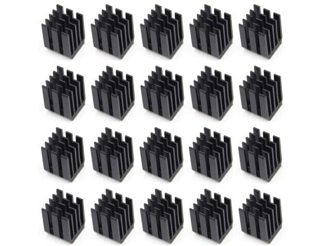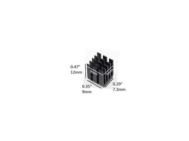 Specifikationer: 30st svarta aluminium heatsinks med 3M8810 klisterband, dimensioner 9mm x 9mm x 12mm, vikt 1 gram per styck