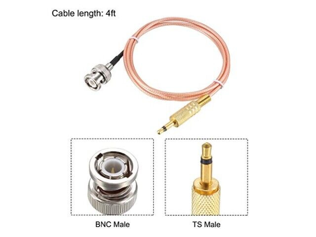 Specifikationer: 4 ft längd, 50 ohms motstånd, BNC male till 3,5 mm mono TS male
