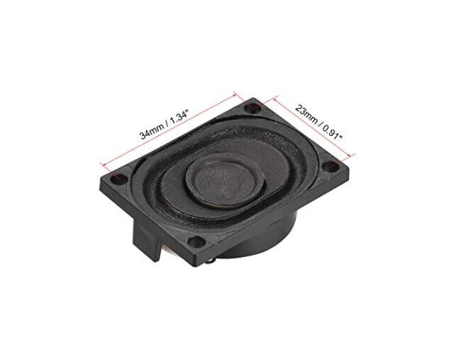 Högtalarna är gjorda av en kombination av metall, plast och magnetmaterial, vilket garanterar både styrka och lättviktsdesign. Magnetdiametern är 16mm och fästhålen är placerade 34 x 23 mm från varandra, vilket möjliggör kompatibilitet med standard monteringsuppsättningar. De totala dimensionerna är ungefär 40 x 28 x 11 mm, vilket gör dem tillräckligt små för att passa i trånga utrymmen utan att kompromissa ljudutgången.