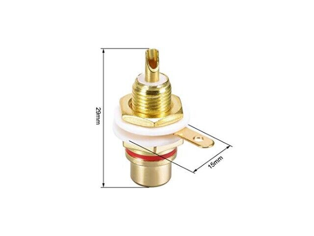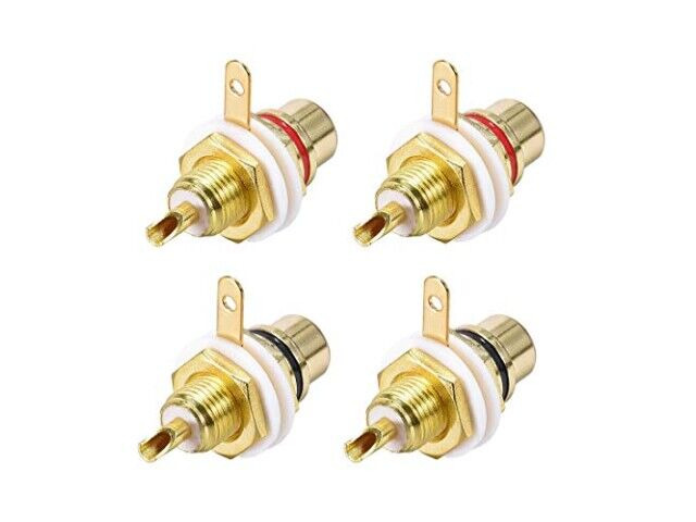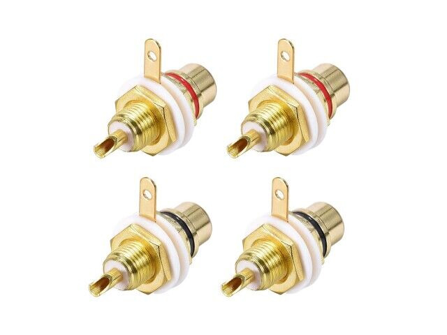 Funktioner: Förgylld, gjord av koppar, röda och svarta färgbänder för kanalidentifiering, RCA-kontakt kvinnlig chassikontakt för förstärkare eller mottagare.