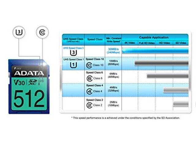 Karta pamięci ADATA Premier Pro 512GB V30S SDXC UHS-I U3 Class 10 została zaprojektowana do wysokiej wydajności nagrywania wideo i zdjęć. Obsługuje nagrywanie 4K UHD i Full HD, co czyni ją idealną do użytku z aparatami DSLR, kamerami wideo i innymi profesjonalnymi urządzeniami. Karta oferuje prędkości odczytu do 100 MB/s i prędkości zapisu do 80 MB/s, choć te wartości mogą się różnić w zależności od urządzenia i typu pliku. Klasyfikacja V30 zapewnia płynne nagrywanie wideo bez utraty klatek ani przerw.