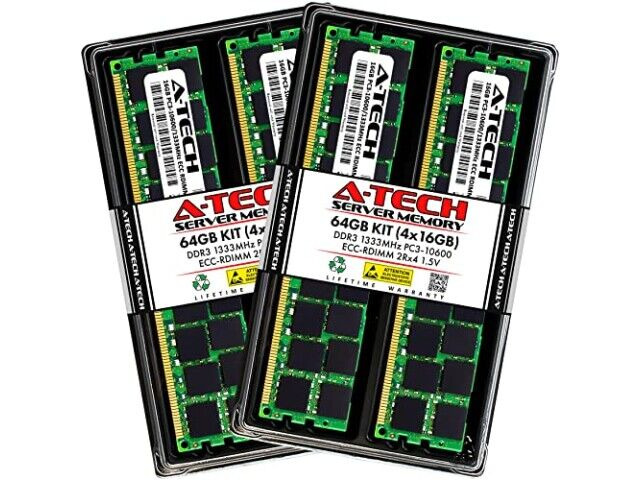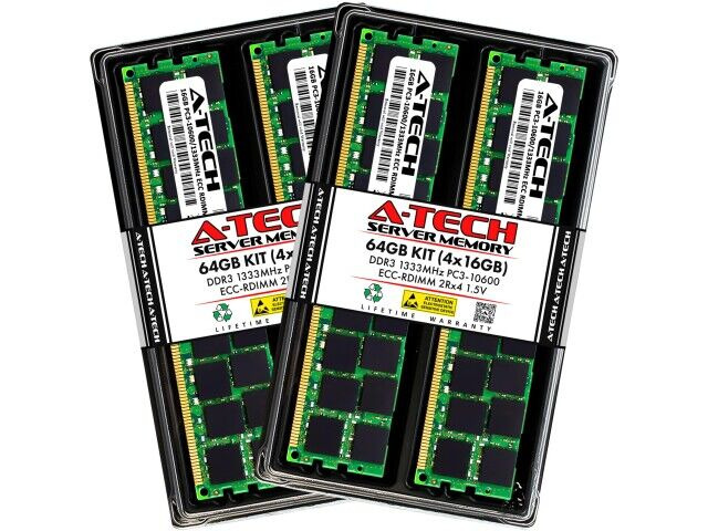 Specifikationer: DDR3 1333MHz PC3-10600R ECC RDIMM 240-Pin, 64GB (4x16GB), 1.5V