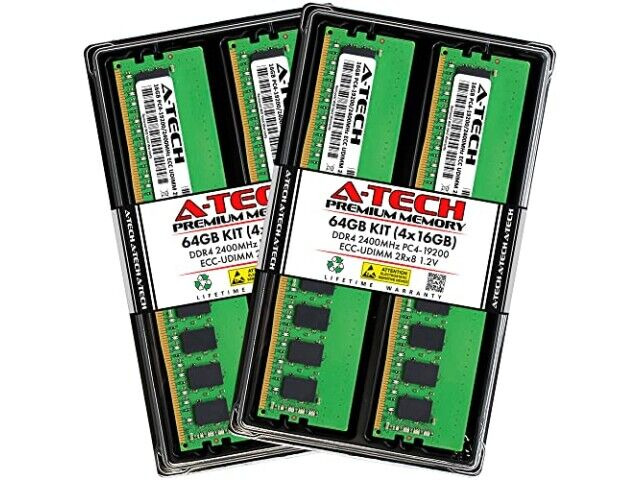 Specifikationer: DDR4 2400MHz, PC4-19200, 64GB (4x16GB), 288-Pin, 1.2V, ECC Unbuffered UDIMM