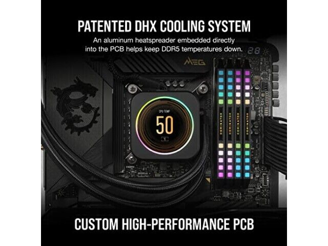 Das Design verfügt über einen schwarzen Kühlkörper mit RGB-Beleuchtung, die über die CORSAIR iCUE-Software gesteuert werden kann. Dies ermöglicht es den Benutzern, die RGB-Beleuchtung mit anderen kompatiblen Komponenten zu synchronisieren, um ein kohärentes Ästhetik zu erzielen. Das DHX-Kühlsystem sorgt dafür, dass der Speicher auch unter hoher Auslastung stabil bleibt, wodurch eine thermische Drosselung verhindert und eine konstante Leistung gewährleistet wird.