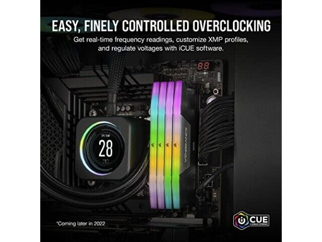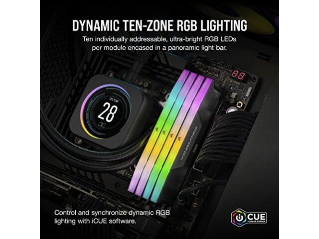 Merkmale: Zehnzonen-RGB-Beleuchtung, integrierte Spannungsregelung, iCUE-Software-Kompatibilität, kundenspezifisches PCB, Intel DDR5-Kompatibilität