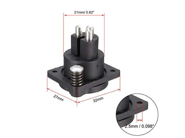 Specifikationer: 3 Pin, Svart, 2.5mm / 0.098" Håldiameter, 21mm / 0.82" Monteringdiameter, 32mm x 27mm x 31mm (L x B x H)