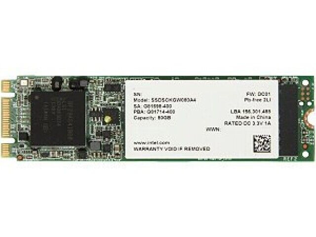 This is an Intel Solid State Drive (SSD) model number SSDSCKGW080A401. The product is designed for high-performance computing and data storage needs, offering faster read and write speeds compared to traditional hard disk drives (HDDs). It is ideal for use in desktop computers, laptops, and servers where quick data access and reliable performance are essential. The drive is compatible with various operating systems and can be used for a wide range of applications, including gaming, video editing, and large data processing tasks. It is built with advanced NAND flash technology to ensure durability and long-term data retention. The drive is also designed to be energy-efficient, reducing power consumption and heat generation during operation. It is suitable for both consumer and enterprise environments, providing a reliable storage solution for users who require high-speed data access and storage capacity.