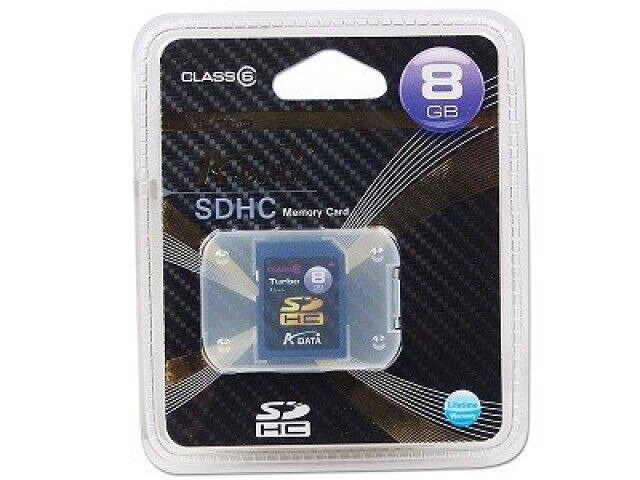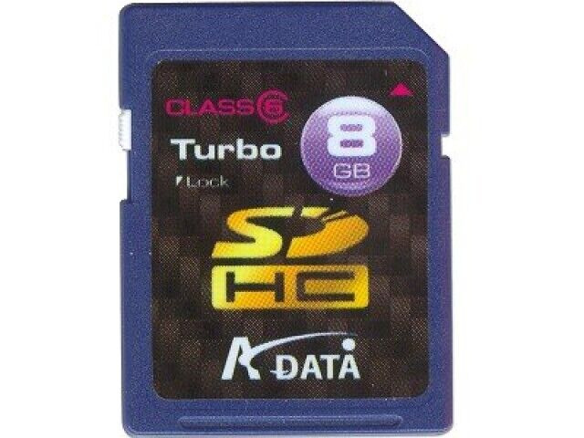 Specifikationer: 8 GB lagringsutrymme, hastighetsklass 6 (6 MB/s), SDHC-kompatibelt, skydda-skrivs-brytare