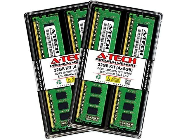 Specifikationer: 32GB (4x8GB), DDR3 240-Pin, 1600MHz PC3-12800E, ECC UDIMM, 2Rx8 Dubbel Rank, 1.5V