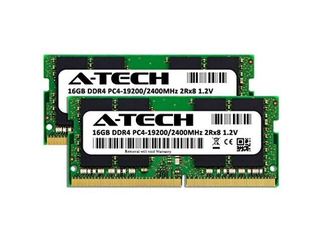 Specifikationer: DDR4 2400MHz, 32GB (2x16GB), 260-pin SO-DIMM, Non-ECC, Unbuffered, 1.2V