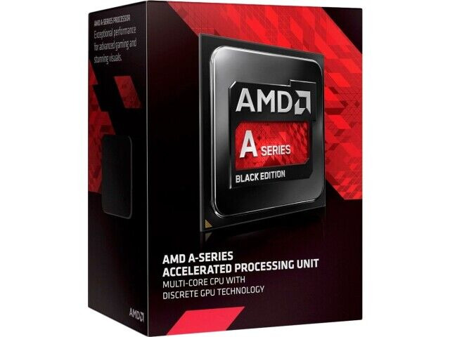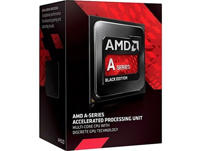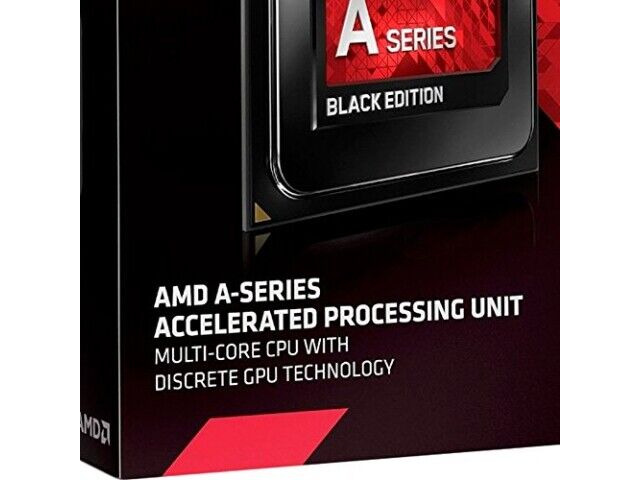 Specificaties: 10 Rekenkernen (4 CPU + 6 GPU), Boostfrequentie 3,8 GHz, Basisfrequentie 3,3 GHz, Radeon R7 Graphics (720 MHz), DDR3-geheugensupport 2133 MHz, FM2+ socket, TDP 95 W