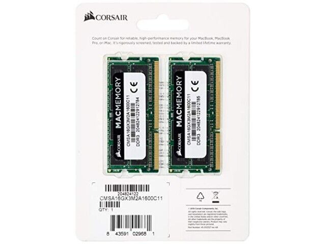 Ten moduł pamięci RAM 16GB DDR3 został zaprojektowany dla urządzeń Apple. Składa się z dwóch modułów po 8GB, co daje łącznie 16GB pamięci systemowej. Moduł działa z częstotliwością 1600MHz i napięciem 1.35V, co czyni go energooszczędnym i odpowiednim dla laptopów. Jest on specjalnie certyfikowany do użycia z pewnymi modelami MacBook i iMac od połowy 2010 do połowy 2011 roku. Pamięć została zbudowana z SODIMM DDR3L o 204 pinach, zapewniając kompatybilność z kompaktowym formatem laptopów Apple.