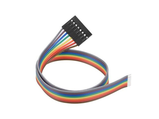Specifikationer: Material: Kopparrödförstärkt aluminium, PVC; Typ: Kvinnlig till Solid Tip (Tinned); För: 2.54mm Avståndshäders; Terminal Antal: 8; Kabeldiameter: 1.3mm / 0.05"; Längd: 30cm / 11.8"