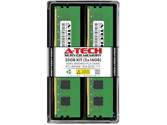 Specifikationer: DDR5 4800MHz PC5-38400, 32GB (2x16GB), 288-pin, 1.1V, ECC Registered RDIMM