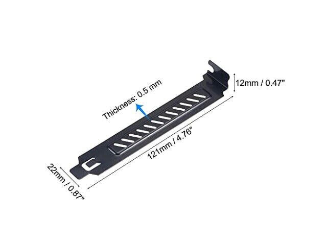 Dessa är svarta PCI-slotskydd designade för att passa i tomma expansionsuttag på ett datorchass. De hjälper till att upprätthålla korrekt luftflöde och förhindra damm från att komma in i systemet. Varje skydd inkluderar en skruv för säker installation, vilket gör dem lätta att använda för de flesta datorbyggnader. Det hårda stålmaterialet säkerställer hållbarhet samtidigt som det bidrar till värmeavledning. De är idealiska för användare som vill hålla sitt datorchass rent och välventilerat utan att kompromissa med estetiken.
