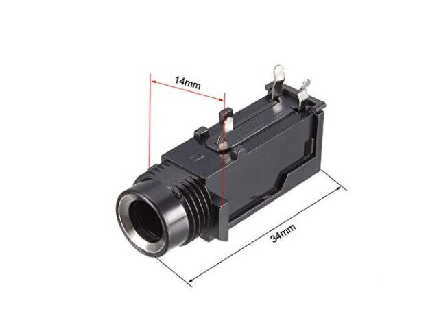 Varje paket innehåller sex stycken av 6.35mm-kontakten, vilket gör att användare kan byta ut flera kontakter samtidigt eller ha reservdelar till hands. Mått på kontakten är 34mm x 14mm x 12.6mm, vilket gör det enkelt att passa in i standard-PCB-layout. Inga extra verk krävs för installationen, eftersom den är utformad för enkel PCB-montering.