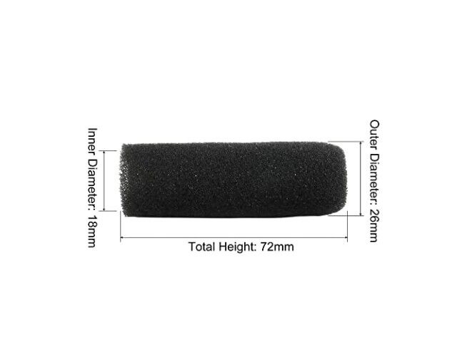 Ekran ma wewnętrzny średnicę 18 mm i zewnętrzną 26 mm, co czyni go kompatybilnym z standardowymi rozmiarami mikrofonów. Miękka i gruba pianka zapewnia dobrą elastyczność i skurczalność, umożliwiając bezpieczne dopasowanie do mikrofonu. Całkowita wysokość 72 mm zapewnia wystarczające pokrycie bez nadmiernego obciążenia. Wykonany jest z trwałego pianki, która zachowuje swój kształt przez długi czas.