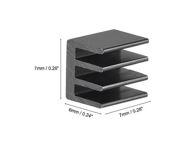 Dessa är små aluminium termiska kylfläsk utformade för effektiv värmeavledning i kompakta elektroniska komponenter. Varje kylfläsk är självhäftande, vilket gör installationen snabb och enkel. Den svarta färgen och den lilla storleken gör dem lämpliga för användning i trånga utrymmen där större kyllösningar är opraktiska. De är idealiska för kylning av chips, stegmotor drivrutiner och andra små elektronik som saknar inbyggda kylsystem.