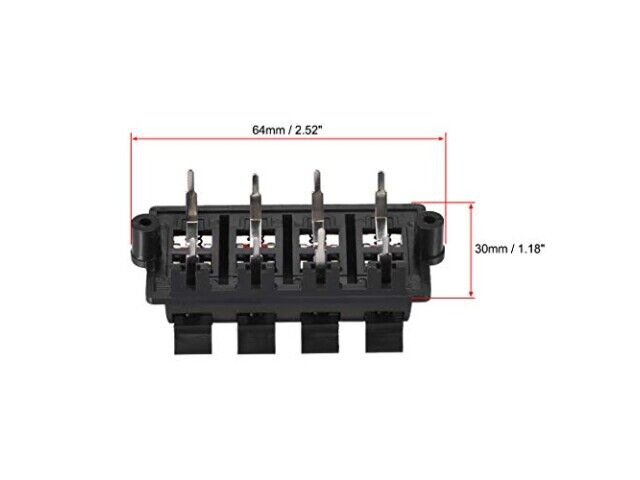 Specifikationer: Nominell belastning: AC 50V / 3A; Kontaktsmotstånd: 100M Ohm; Aktiverande kraft: 1 Kgf; Passform kabel: AWG24-16; Färgkoderad polaritet: Röd/Svart; Storlek: 64mm x 30mm x 29mm; Monteringhålsavstånd: 57.5mm; Pinavstånd: 13mm; Pinbredd: 1.5mm