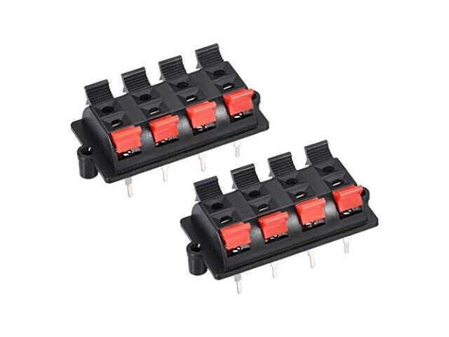 uxcell 2 Row 8 Way Spring Terminal Clip Push Release Audio Connector Strip Block WP8-03 2Pcs är en terminalblock designad för att ansluta högtalarkablar enkelt och pålitligt. Den har en fjäderbelastad design som möjliggör snabba och säkra kabelanslutningar utan behov av lödning eller klämmning. Mekanismen av trycktyp säkerställer att kablar hålls fast på plats, vilket minskar risken för lösa anslutningar eller signalförlust. Detta gör den idealisk för ljudentusiaster och professionella som behöver ett pålitligt sätt att ansluta högtalare eller uppgradera sina ljudsystem.
