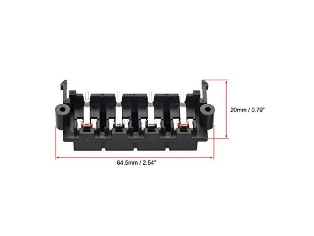 Specyfikacje: Rated Load: AC 50V / 3A; Contact Resistance: 100M Ohm; Actuating Force: 1 Kgf; Fit Cable: AWG24-16; Color Polarity Coding: Red/Black; Size: 64.5mm x 20mm x 26mm; Mounting Hole Distance: 58mm; Pin Distance: 13mm; Pin Width: 1.1mm
