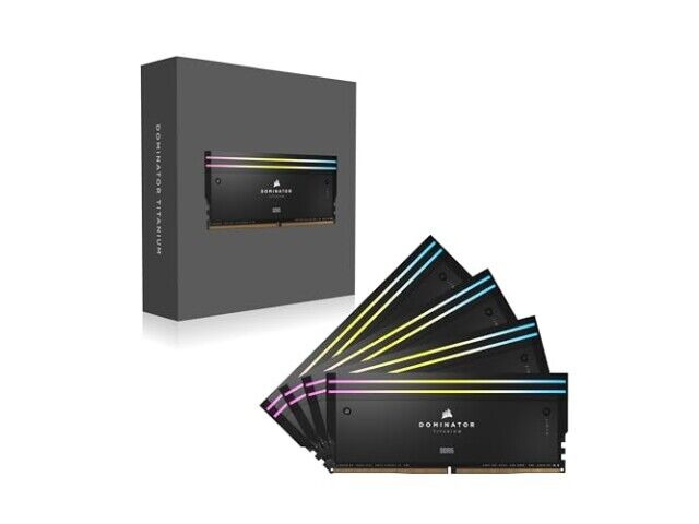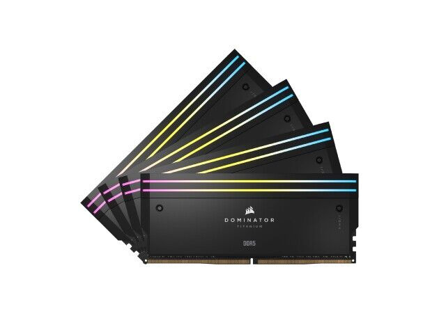 CORSAIR Dominator Titanium RGB DDR5 minne är utformad för höggammat datorer och spelsystem. Den har en kapacitet på 96GB i fyra 24GB-moduler, som kör med 6400MHz och en CL32-latens. Denna minne är ideal för användare som behöver stora mängder RAM för multitasking, videoredigering eller avancerade spel.
