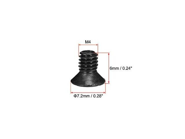 Specifikationer: Gängtyp: metrisk; Gängstorlek: M4 x 6mm; Material: kolstål; Finish: Karburering + svart zinkpläterad