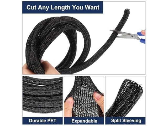 Jest to 10-stopowy, oplecione kabel, wykonany z materiału PET, zaprojektowany do ochrony i organizacji kabli w różnych środowiskach. Jest koloru czarnego i posiada konstrukcję typu split, która ułatwia wkładanie i zarządzanie kablami o różnej wielkości. Elastyczna natura osłony pozwala na rozciągnięcie i ciasne dopasowanie wokół kabli, zapewniając bezpieczne i estetyczne ułożenie. Jest idealny do użytku w biurach, centrach rozrywki domowej i innych miejscach, gdzie zarządzanie kablami jest kluczowe.