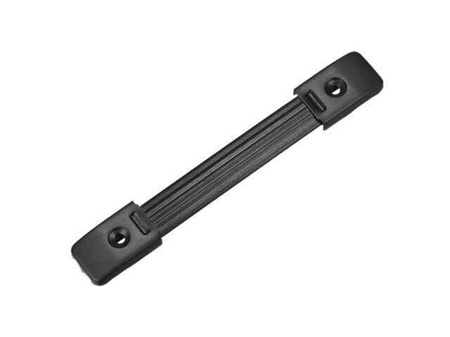 Handtaget har en flexibel design med fack i hålen, vilket gör att fjäderstålsslangen kan glida ut när den inte används, vilket gör det enkelt att justera eller förvara. Det är idealiskt för användning på PA-högtalarkabinetter, subwoofers, förstärkare och andra liknande ljudutrustningar. Den svarta färgen och det minimalistiska utseendet gör det både funktionellt och estetiskt tilltalande. Metallförstärkningarna i varje änden av remmen bidrar till dess hållbarhet och enkel installation.
