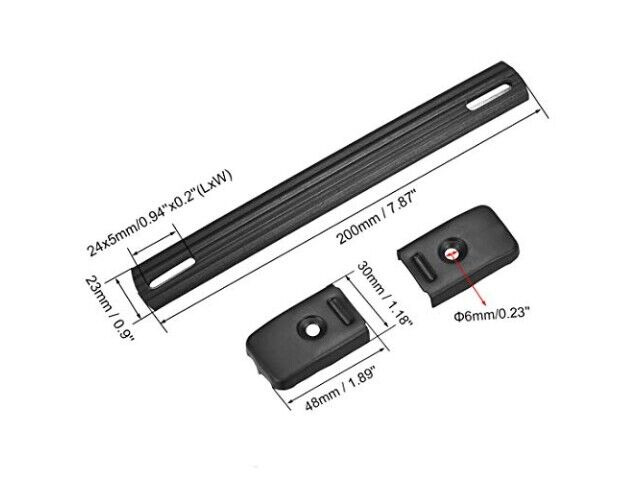 Specifikationer: Material: PVC, Metall; Färg: Svart; Handtagsstorlek: 200x23 mm/7,87''x0,9''(LxW); Handtagshålsstorlek: 24x5 mm/0,94''x0,2''(LxW); Monteringshålsdiameter: 6 mm/0,23''; Spänne Storlek: 48x30x1,1 mm/1,89''x1,18''x0,04''(LxWxT)