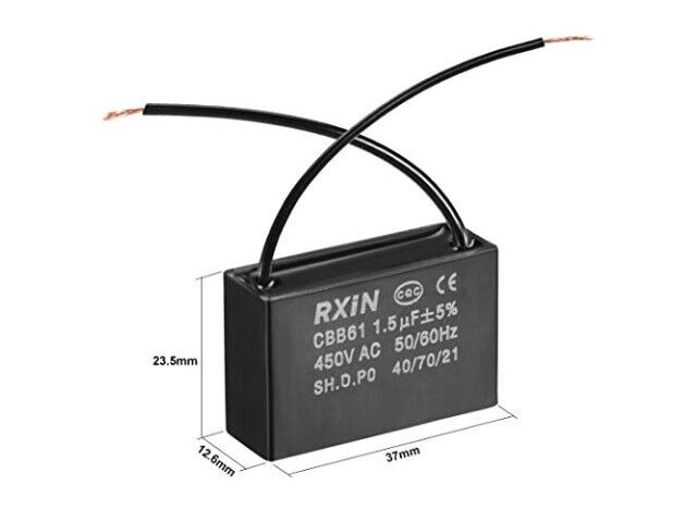 Specifikationer: 1.5uF, 450V AC, 50/60Hz, 37x23.5x12.6mm