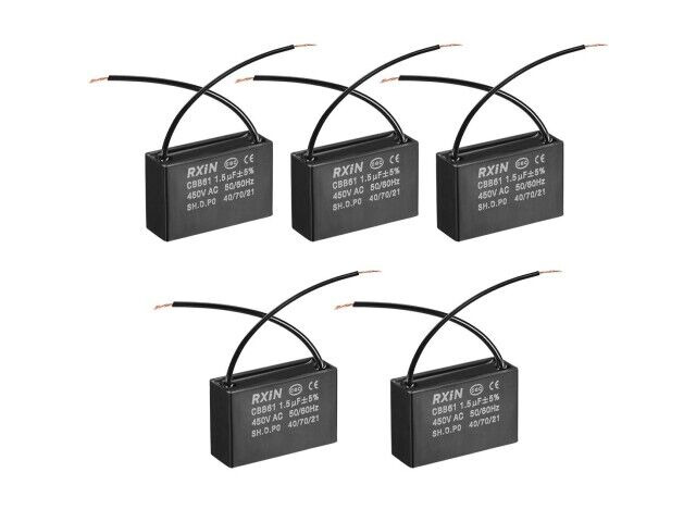 Dimensionerna på kondensatorn är 37x23,5x12,6mm, vilket gör det enkelt att montera i standardmotorhus. Den levereras med två kablar för enkel installation. Produkten säljs i en förpackning med fem, vilket är praktiskt för att byta ut flera kondensatorer samtidigt eller för att ha reservdelar till hands.