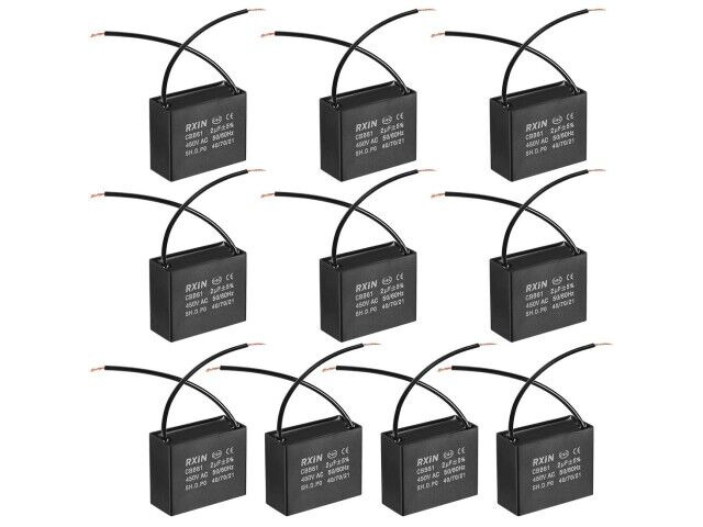 Kondensatorn levereras med två kablar för enkel installation och förpackas i en uppsättning av tio enheter, vilket gör den bekväm för bulkbyte eller flera installationer. Den är idealisk för användning i takfläktar som kan uppleva långsam drift eller misslyckande att fungera vid olika hastigheter. I sådana fall kan kondensatorn vara skadad eller nedbruten och måste bytas ut omedelbart för att återställa korrekt motorfunktion.