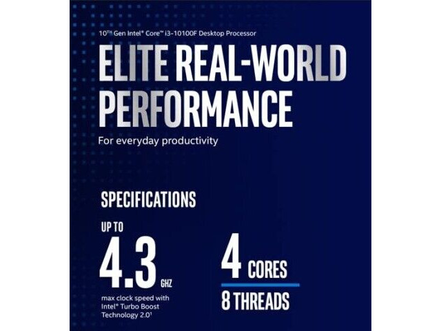 De Intel Core i3-10100F is een desktopprocessor die is ontworpen voor mainstream berekeningen, en biedt een balans tussen prestaties en efficiëntie. Het heeft vier kernen en acht threads, waardoor het geschikt is voor multitasking en lichte tot matige belastingen. Met een basisklokfrequentie van 3,6 GHz en de mogelijkheid om op te schalen tot 4,3 GHz, biedt het voldoende kracht voor dagelijks gebruik, waaronder surfen op internet, kantoorsoftware en mediabuffering. De processor is gebouwd op de 14nm fabricatietechnologie van Intel en bevat 6 MB L3-cache voor verbeterde gegevensaccesssnelheden. Het is compatibel met moederborden met een LGA 1200-socket, die onderdeel zijn van de 10e generatie Intel-platform. De i3-10100F bevat geen ingebouwde grafische verwerkingseenheid (GPU), dus een aparte grafische kaart is vereist voor video-uitvoer en gaming. Deze processor is ideaal voor gebruikers die een betrouwbare en kostenefficiënte oplossing nodig hebben voor algemene berekeningen zonder de behoefte aan een ingebouwde GPU.