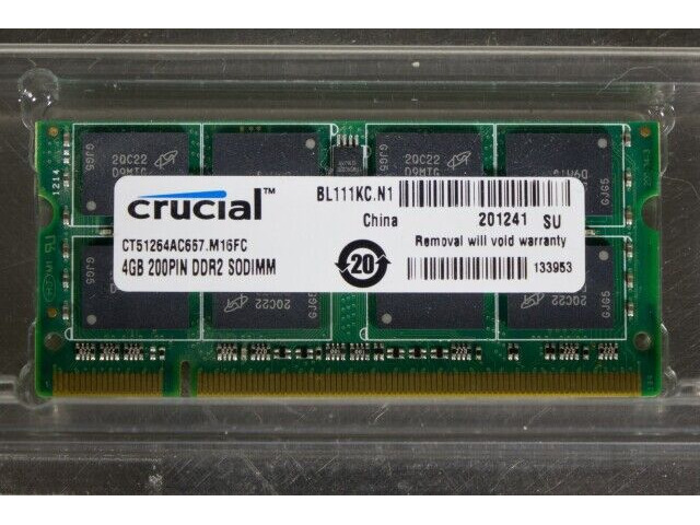 Crucial 4GB Single DDR2 667MHz (PC2-5300) CL5 SODIMM 200-Pin Notebook-Speicher ist ein Speichermodul, das für Laptops und Netbooks entwickelt wurde. Es verbessert die Systemleistung, indem es das Laden von Anwendungen beschleunigt und ein flüssigeres Multitasking ermöglicht. Dieses Modul ist ideal für Benutzer, die ein zuverlässiges und erschwingliches Upgrade für ihre mobilen Computing-Geräte benötigen.
