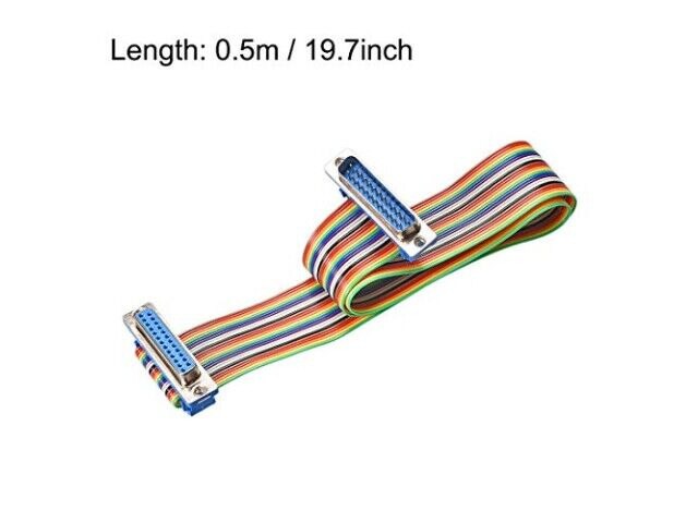 Detta är en platt slingskabel utformad för att ansluta DB25 hannen till DB25 kvinnans kontakter. Den har ett 2.54mm stift mellanrum och en total längd på 19.7 tum, vilket gör den lämplig för precisa interna kabeldragningstjänster. De regnbågsfärgade kablarna hjälper till att identifiera enskilda anslutningar snabbt, vilket är särskilt användbart i komplexa uppsättningar. Kablen är konstruerad för att spara plats och minska tiden som krävs för kretsanslutningar.