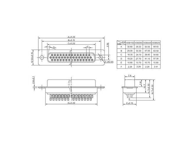 Specyfikacje: Connector Type: Socket(Female); Rating Current: 3A; Number of Positions: 44; Number of Rows: 3; Termination Style: Solder Cup; Mounting Angle: Straight; Overall Size: 53.05 12.5 16.7mm(L W H)