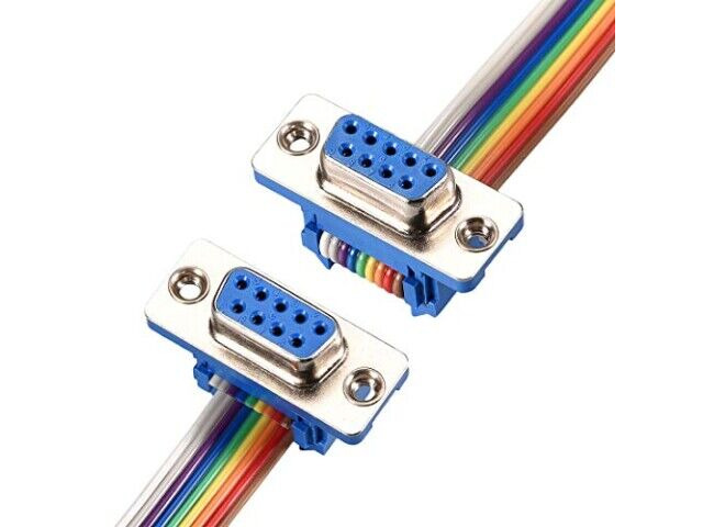 Den här är en platt ribbonskabel utformad för att ansluta DB9-femen-kontakter, som vanligen används i elektronik- och datorapplikationer. Den har en 2.54mm stiftpitch och en total längd på 11.8 tum, vilket gör den lämplig för intern kabeldragning i enheter som kontorsutrustning och ljud/videoutrustning. Den multifärgade färgkodningen hjälper till att identifiera enskilda kablar snabbt, vilket är särskilt användbart under installation eller felsökning. Kablen medföljer med monterings skruvar för att säkerställa en säker och stabil anslutning när den fästs på enheter.