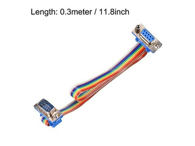 Specifikationer: Anslutningsstyp: DB9 Hane till DB9 Hon, Stiftantal: 9, Stiftintervall: 2.54mm, Längd: 0.3meter / 11.8tum, Kabelförbredd: 11.4mm / 0.45tum, Färg: Regnbågsfärg
