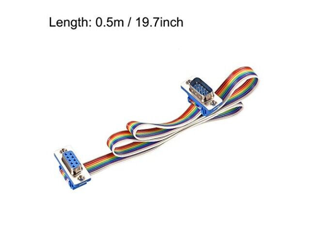 Specifikationer: Connector Type: DB9 Male to DB9 Female, Pin Number: 9, Pin Pitch: 2.54mm, Length: 0.5m / 19.7inch, Cable Width: 11.4mm / 0.45inch, Color: Rainbow Color