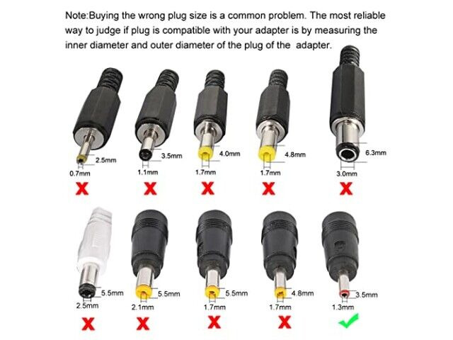 Specyfikacje: Wire length: 30cm/11.81", Interface specifications: 3.5mm x 1.35mm, Wire outer diameter: 3.5mm, Rated current: 1A