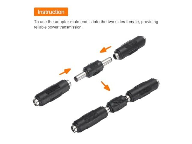 Specyfikacja: Materiał: Metal, Plastik; Rozmiar złącza DC: 43 x 11mm / 1.69 x 0.43 cala (Dł. Szer.); Rozmiar adaptera zasilania męski-męski: DC 5.5x2.1mm; Lista pakowania: 10 x Adapter zasilania DC