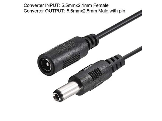Specifikationer: Typ: DC-omvandlare kabel; Total längd: 17cm / 6.69"; Konvertering IN: 5.5mm 2.1mm Female; Konvertering UT: 5.5mm 2.5mm Male med pin