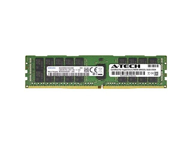 Detta är ett 32GB DDR4 ECC Registered DIMM minnesmodulen utformat som ett kompatibelt ersättningsalternativ för Supermicro MEM-DR432L-SL02-ER24. Den har en hastighet på 2400 MHz, vilket gör den lämplig för system som kräver högpresterande minne för att hantera krävande uppgifter. Modulen använder Samsung-teknik och är konstruerad enligt JEDEC DDR4-standarden med ett spänningskrav på 1,2 V. Den är idealisk för servrar och arbetsstationer som behöver tillförlitligt minne med korrigeringsfunktioner för fel.
