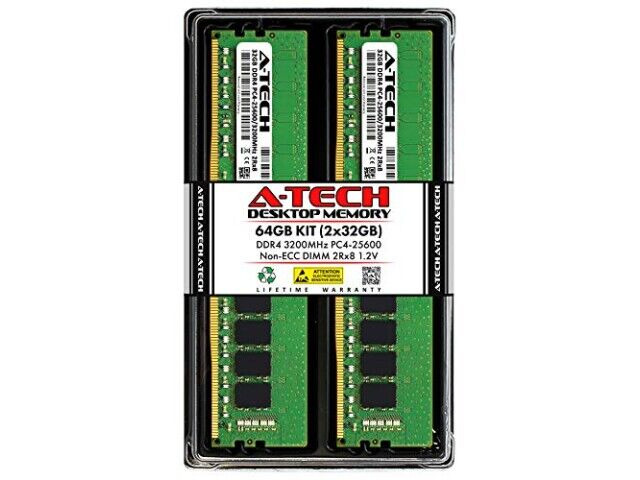 Specifikationer: DDR4 3200MHz PC4-25600, 64GB (2x32GB), 288-pin, 1.2V, Non-ECC UDIMM
