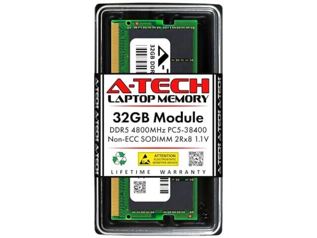 Specifikationer: DDR5 SO-DIMM 262-Pin, 4800 MHz, 32GB, 1.1V, Non-ECC, 2Rx8
