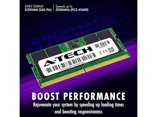 Specifikationer: DDR5 5200MHz PC5-41600, 64GB (2x32GB), SODIMM 262-pin, 1.1V, Non-ECC, JEDEC standard