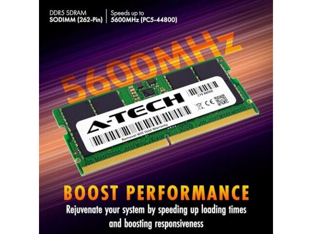 Specifikationer: DDR5 SO-DIMM 262-Pin, 5600 MHz, PC5-44800, 1.1V, Non-ECC, 2Rx8